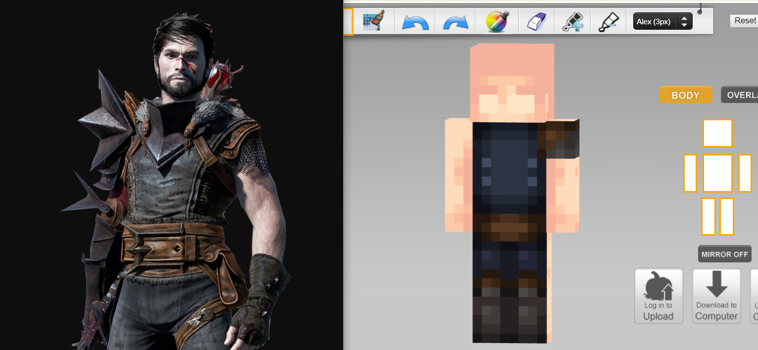 InkWarrior. El editor es para skins de formato "Steve", por eso se ve como si le faltasen partes en los brazos.