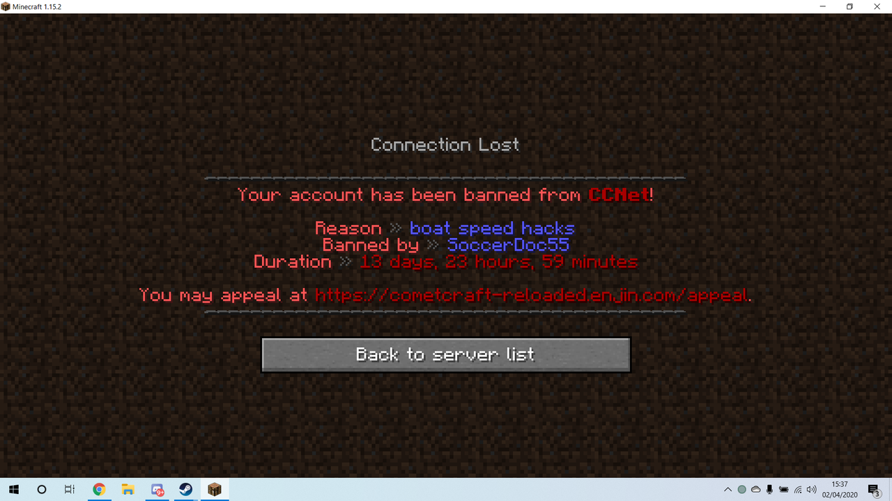 When i spoke to him he asked why i was going so fast i explained to him the slime legs give a increase of speed and is a way to "Run" and boat at the same time If anything i dont think SoccerDoc knows what hes doing, I've been playing this server since August / September time (recently came back) if i have been hacking i think it would've been caught along time ago when i've PVP'd and ran around the whole map raiding / Looting (I was temp banned rightfully by SoccerDoc for griefing outside of a claim)